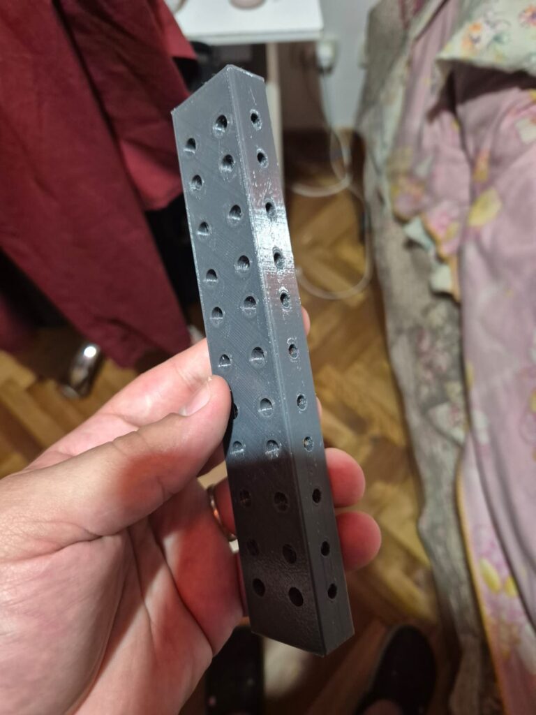 Un colaborador del proyecto diseño bulones plásticos, estaban buenos, pero la impresión tenia que ser perfecta. No confió en las tolerancias de mi impresora, los use de momento pero mas adelante compre bulones M6 de 20mm y tuercas para asegurarme de no tener problemas en el armado o en la resistencia de los mismos.